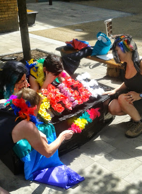 The lovely Dee invited me to join her friends at a funeral for Pride in honour of its former glory. It is a reaction to the death of our march at the hands of corporate sponsors. Donna Riddington and Mare Tralla have been actively involved with many grassroots and international art projects. They introduced me to Dan Glass and friends who are proactive in activism, and then we had a cup of tea.